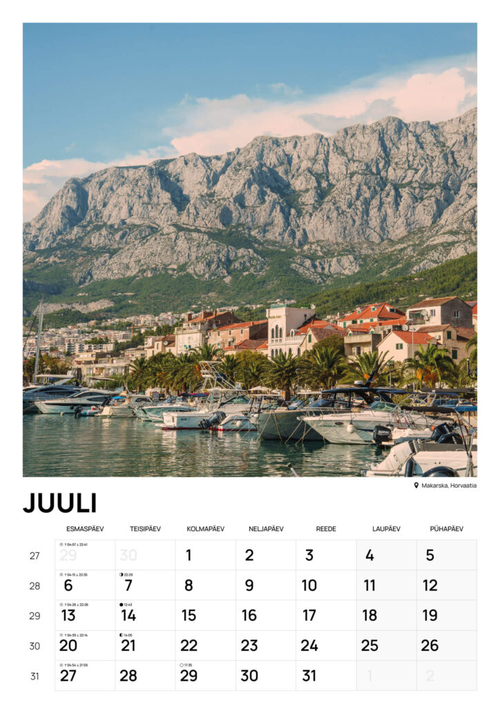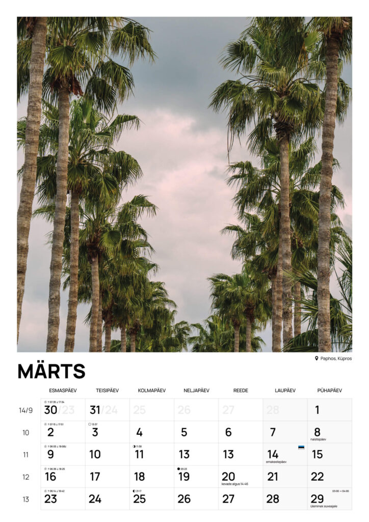 Kalender on kujundatud nii, et see oleks korraga praktiline ja visuaalselt nauditav.